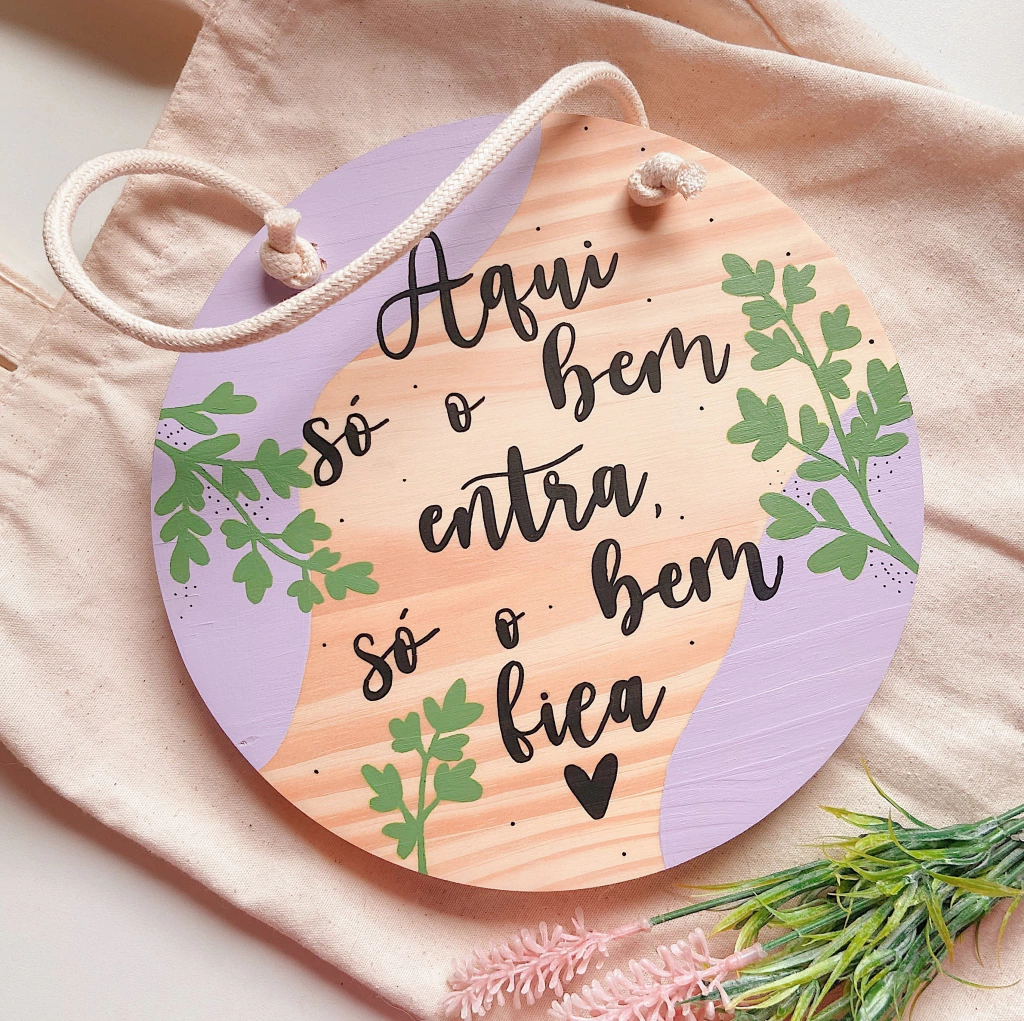 Arte feita à mão em madeira com frase personalizada nas cores e escolhas do cliente.