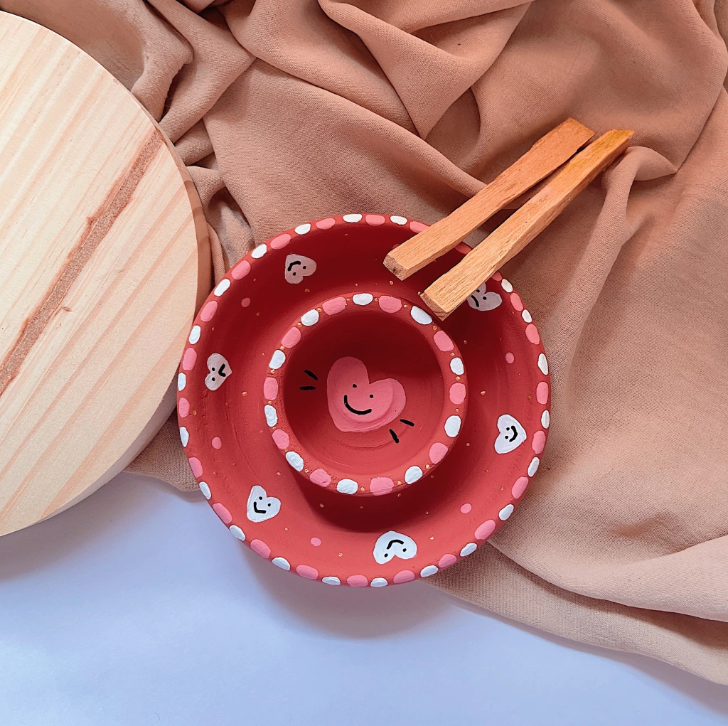Porta velas pintado à mão em cerâmica, com corações e detalhes coloridos, perfeito para deixar qualquer ambiente mais descontraido.✿